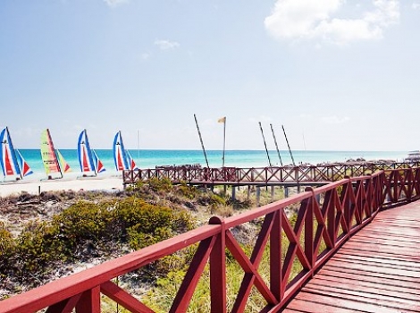 Cayo Santa María es un paradisiaco islote de 13 kilómetros de largo y 2 de ancho ubicado en el noreste de la central provincia de Villa Clara, en el archipiélago Jardines del Rey¨. La Rosa Blanca de los Jardines del Rey¨ como tambien se le conoce, es un paraíso – hasta hace poco tiempo casi secreto – al cual se llega a través de una carretera construida sobre una base de rocas depositada sobre el fondo marino, llamada pedraplén. Esta carretera con una longitud de 48 Km desde las cercanías del pueblo de Caibarién hasta Cayo Santa María y 46 puentes diseñados para mantener el flujo normal de las aguas y fauna marina y no provocar daños a los ecosistemas marinos y terrestre, es una obra de ingeniería significativa que mereció el Premio Puente de Alcántara a la Mejor Obra Civil Iberoamericana. Cayo Santa María posee 11 kilómetros de playas de magnífica calidad, entre las que destacan Perla Blanca, Las Caletas, Cañón y Cuatro Punta, con farallones de telón de fondo que realzan su belleza. La region es también el hogar de grandes colonias de flamencos y gaviotas, así como las iguanas, moluscos y varias especies de aves. Otras aves que viven en el cayo son el tocororo, que es el ave nacional de Cuba, así como los pájaros carpinteros y halcones. La diversidad animal se complementa con una exuberante flora de la región, compuesta por 248 especies, incluyendo 91 medicinales, 72 maderables, 41 productoras de sesinas y 40 especies ornamentales. El Cayo tiene vestigios de culturas precolombinas en cavernas cercanas a las playas, que cuentan con hermosos fondos marinos. Otra singularidad de la región es el Buque San Pascual, que encalló cerca de Cayo Francés desde hace casi 70 años, y se ha convertido en una rareza naval, ya que fue construido de hormigón armado en San Francisco, California, en 1920. La naturaleza misma ha creado las condiciones para el ocio, incluyendo un arrecife de coral que atenúa la fuerza de los vientos y las olas, creando así un ambiente único para acoger a miles de vacacionistas que visitan la región cada año.
